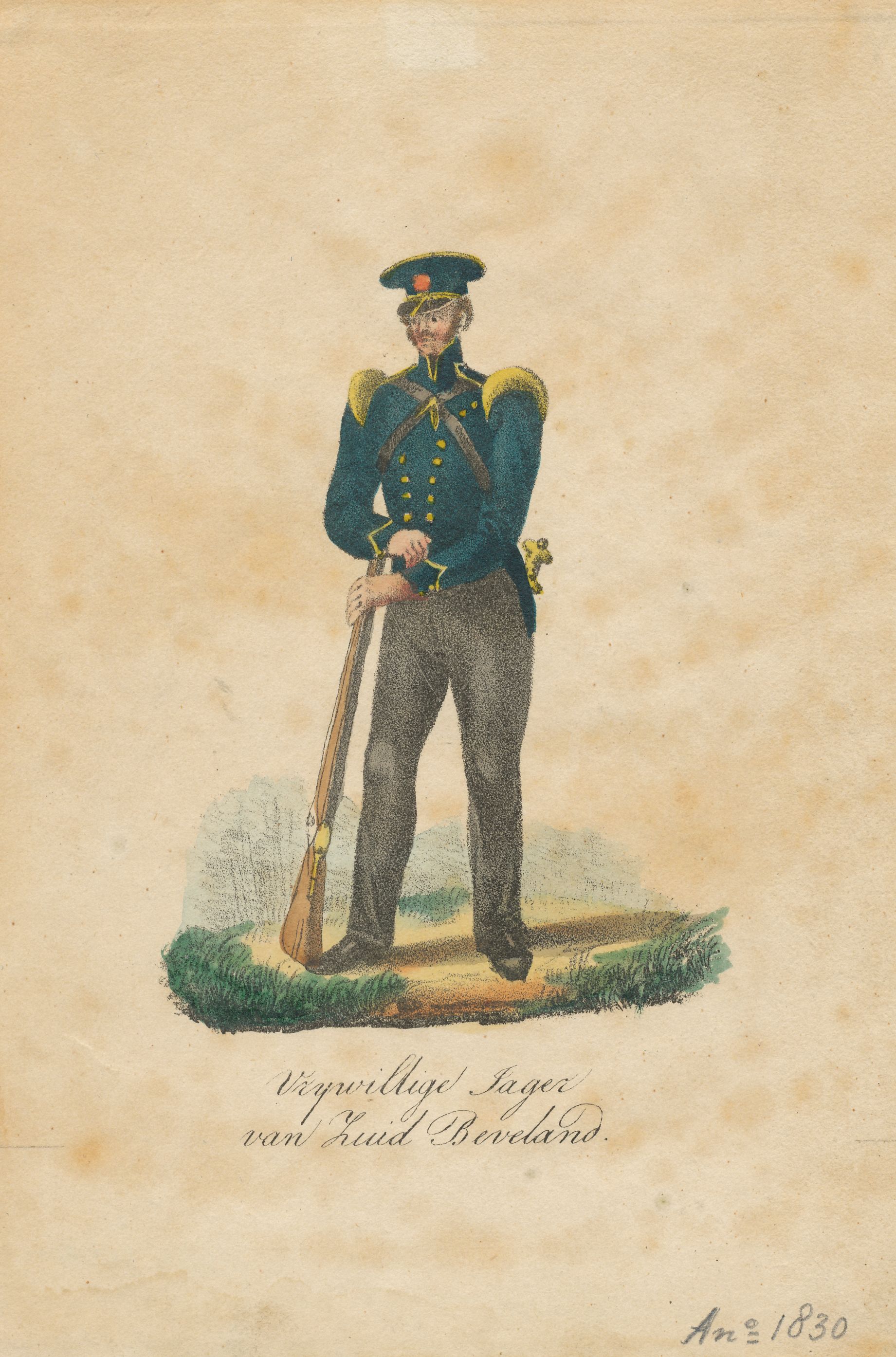 Opnieuw komt er een voorschrift van de Gouverneur in september 1828. Deze bevat een kennisgeving dat de modellen van de schakots van de rok en van de pantalon voor de uniforme kleding van de schutterij in de provinciale bureaus kunnen worden bezichtigd. Verzocht wordt om met de commandant van de schutterij in overleg te treden en het nodige hiervoor voor te bereiden. In een wel zes bladzijden tellende brief geeft de Gouverneur omstandig aan ‘dat de stof voor de uniforme kledingstukken van de schutterij van inlandsche fabykagie behoort te wezen’. Deze opmerking is gegrond op een aanschrijving van het Departement van Binnenlandse Zaken als op de bepalingen van het Besluit van Zijne Majesteit betreffende maatregelen tot opbeuring van de inlandse fabrieken van lakens. Er mogen alleen inlandse wollen stoffen tot de monteringen worden gebruikt.