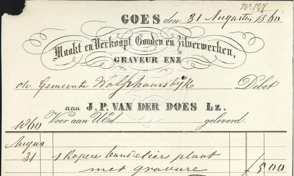 Gedeputeerde Staten sturen het gemeentebestuur in november 1860 een brief met bijlagen van de garancinefabrikanten Fransen van de Putte en compagnon toe voor het verkrijgen van een vergunning om het garancinewater in de suatiesluis van de Wilhelminapolder uit te lozen met het verzoek om het gevoelen van het gemeentebestuur te vernemen. Het college antwoordt dat het geen bedenkingen heeft tegen het verzoek. Maar, alvorens daarover de gemeenteraad een voorstel te doen, wenst het college het gevoelen van de hoofdingenieur van de waterstaat in Zeeland te vernemen in hoever namelijk de aanhoudende uitlozing van dat water aan de suatiesluis nadeel zou kunnen toebrengen. Enkele weken later sturen Gedeputeerde Staten het advies van de hoofdingenieur toe.